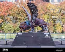And I saw a beast coming up out of the sea, having seven heads and ten horns, and upon his horns ten diadems, and upon his heads names of blasphemy. [2] And the beast, which I saw, was like to a leopard, and his feet were as the feet of a bear, and his mouth as the mouth of a lion. And the dragon gave him his own strength, and great power. [3] And I saw one of his heads as it were slain to death: and his death's wound was healed. And all the earth was in admiration after the beast. [4] And they adored the dragon, which gave power to the beast: and they adored the beast, saying: Who is like to the beast? and who shall be able to fight with him? [5] And there was given to him a mouth speaking great things, and blasphemies: and power was given to him to do two and forty months.