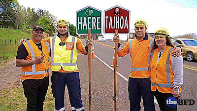 Tempting for drivers exasperated by Te Reo - don't stand in the middle of the road, guys