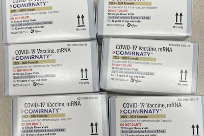 Box loads of Pfizer's latest COVID-19 Death Dart, marked with its brand name COMINARTY, are arriving at US Military Bases. The boxes are labelled "2023-2024." They're planning another COVID outbreak to steal the Presidential Election (again) next year.